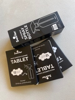 Simply drop one tablet into a reusable spray bottle filled with 500ml of warm water. Let it dissolve fully before use, then spray and wipe as usual!